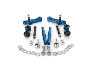 - Provides roll center correction for lowered cars (coilovers recommended, lowering springs and replacement shocks generally provide too much droop)