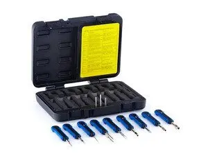 Unlike small screwdrivers, picks, and paper clips, these tools are the correct size and shape to remove and install tiny electrical pins and terminals at plastic block connectors with ease, and will not damage the connectors in the process.